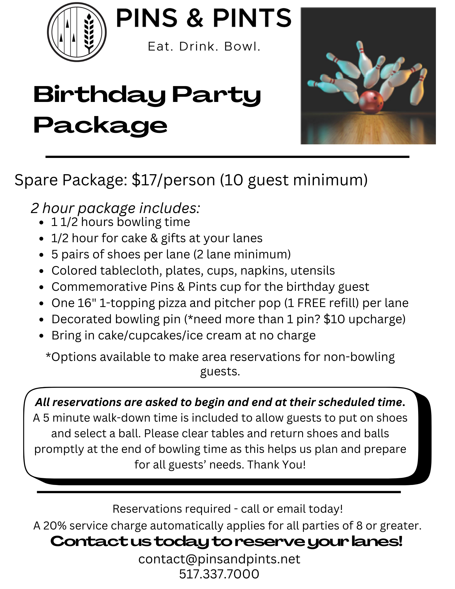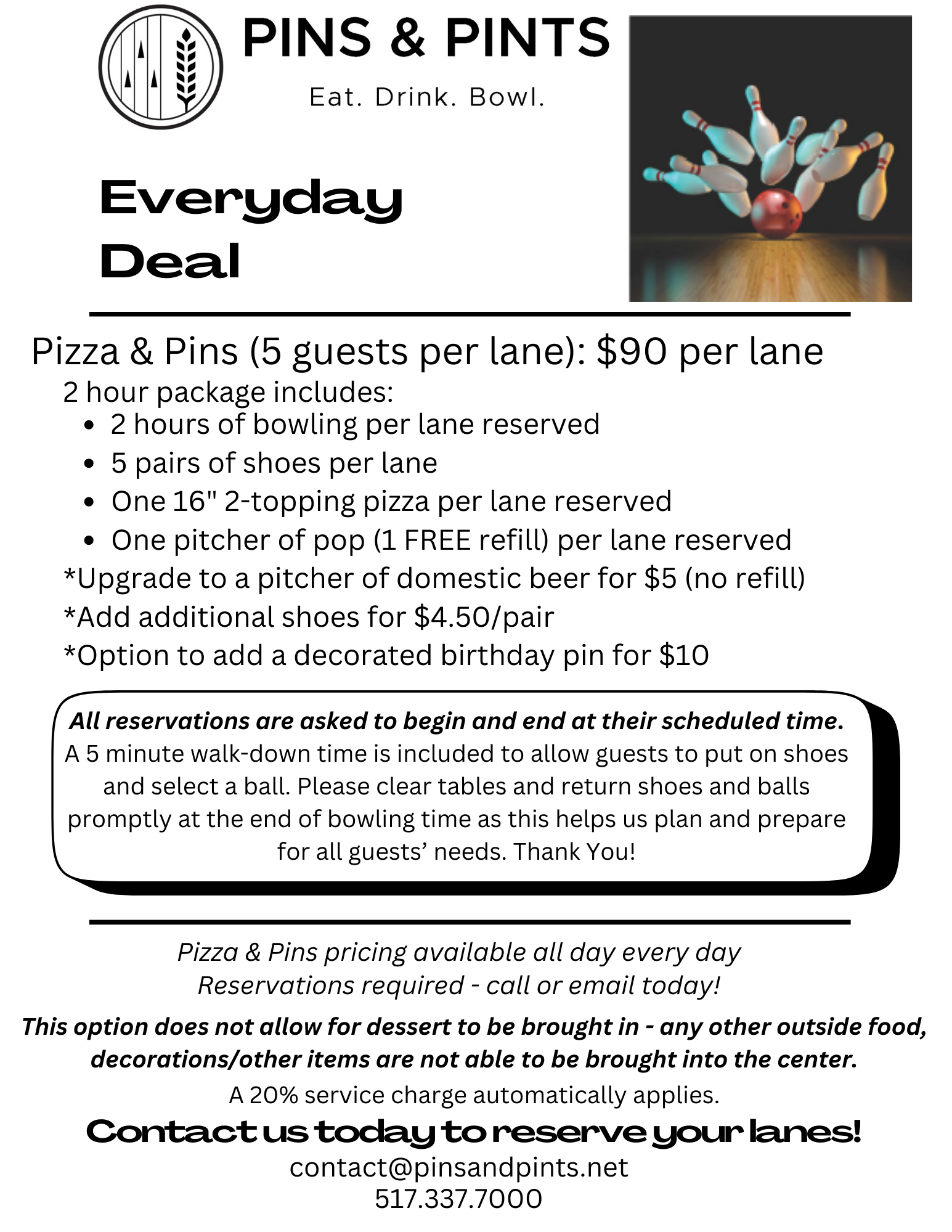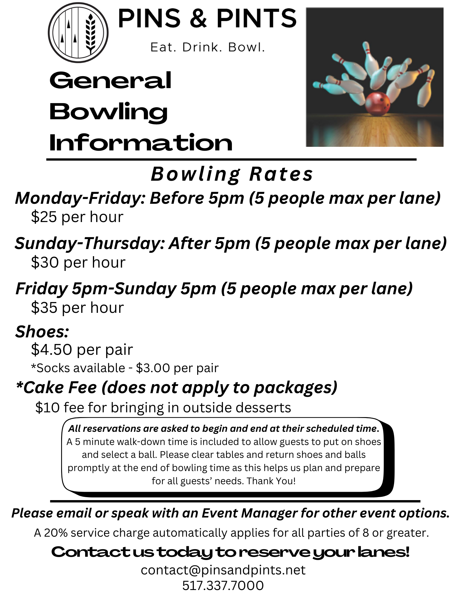 - Pins and Pints Classic league-$25/bowler, at 6:30pm (certified league)